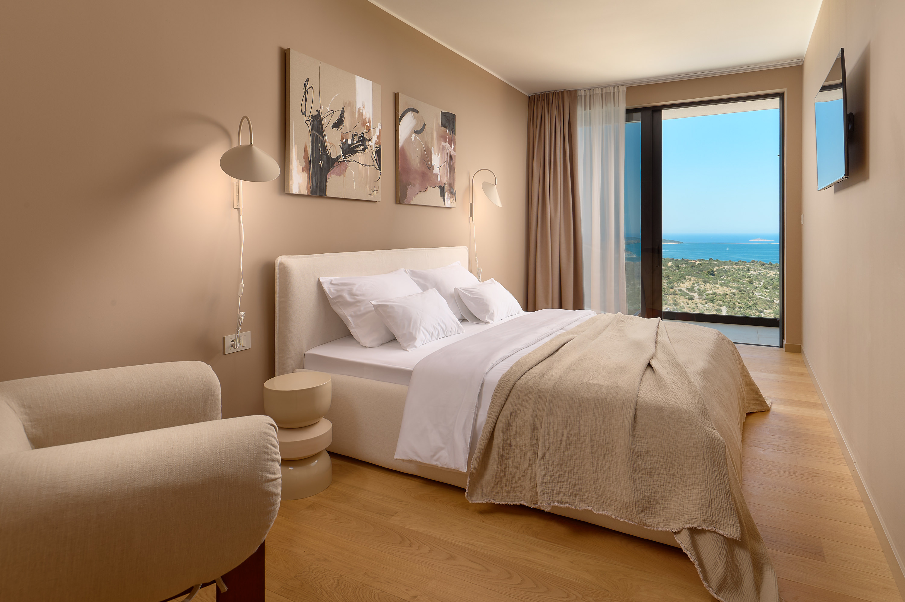 Die Villa Five K ist eine luxuriöse, moderne Villa in erhöhter Lage oberhalb von Primošten und bietet einen atemberaubenden Panoramablick auf das Meer und eine der bekanntesten Küstenstädte Kroatiens.