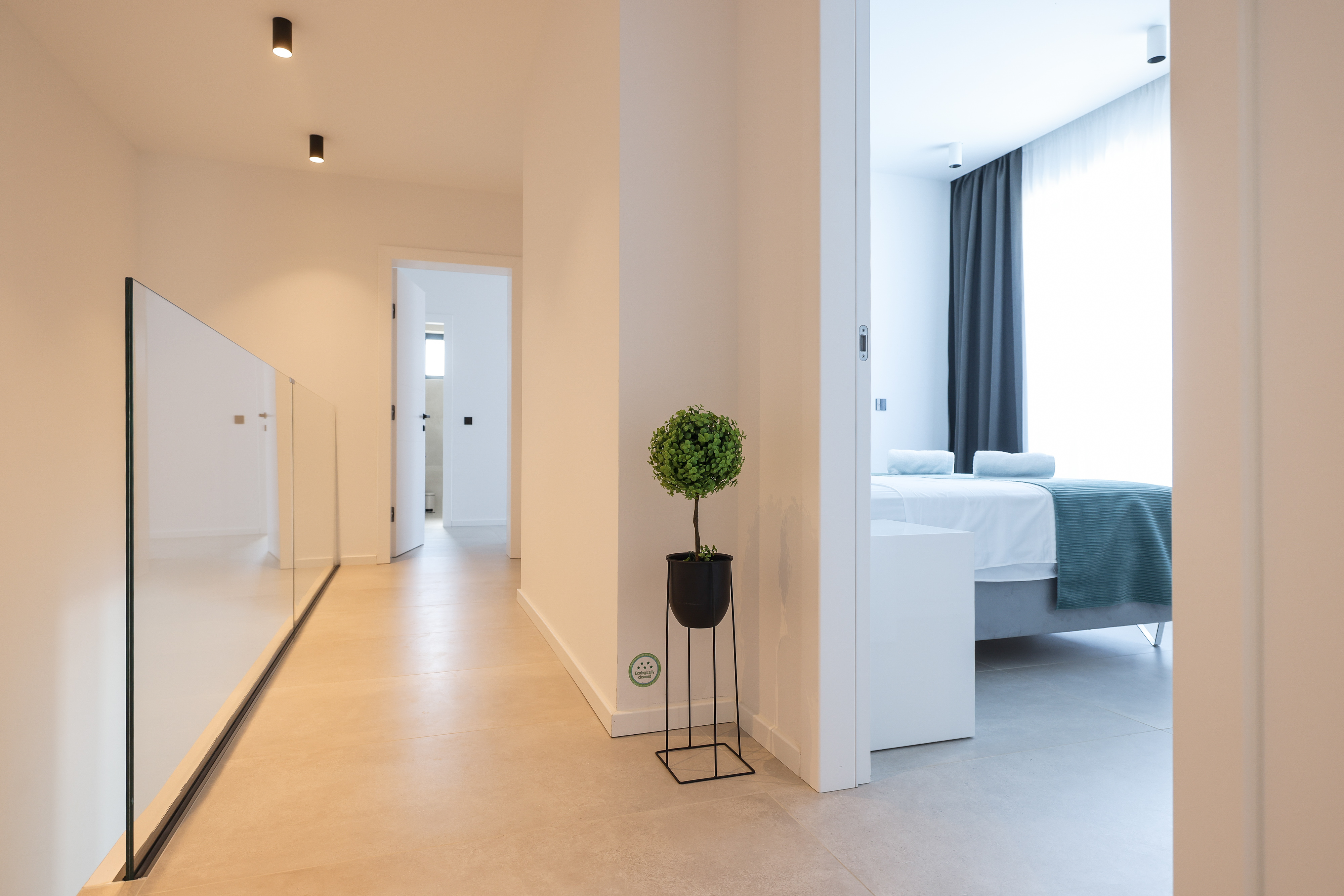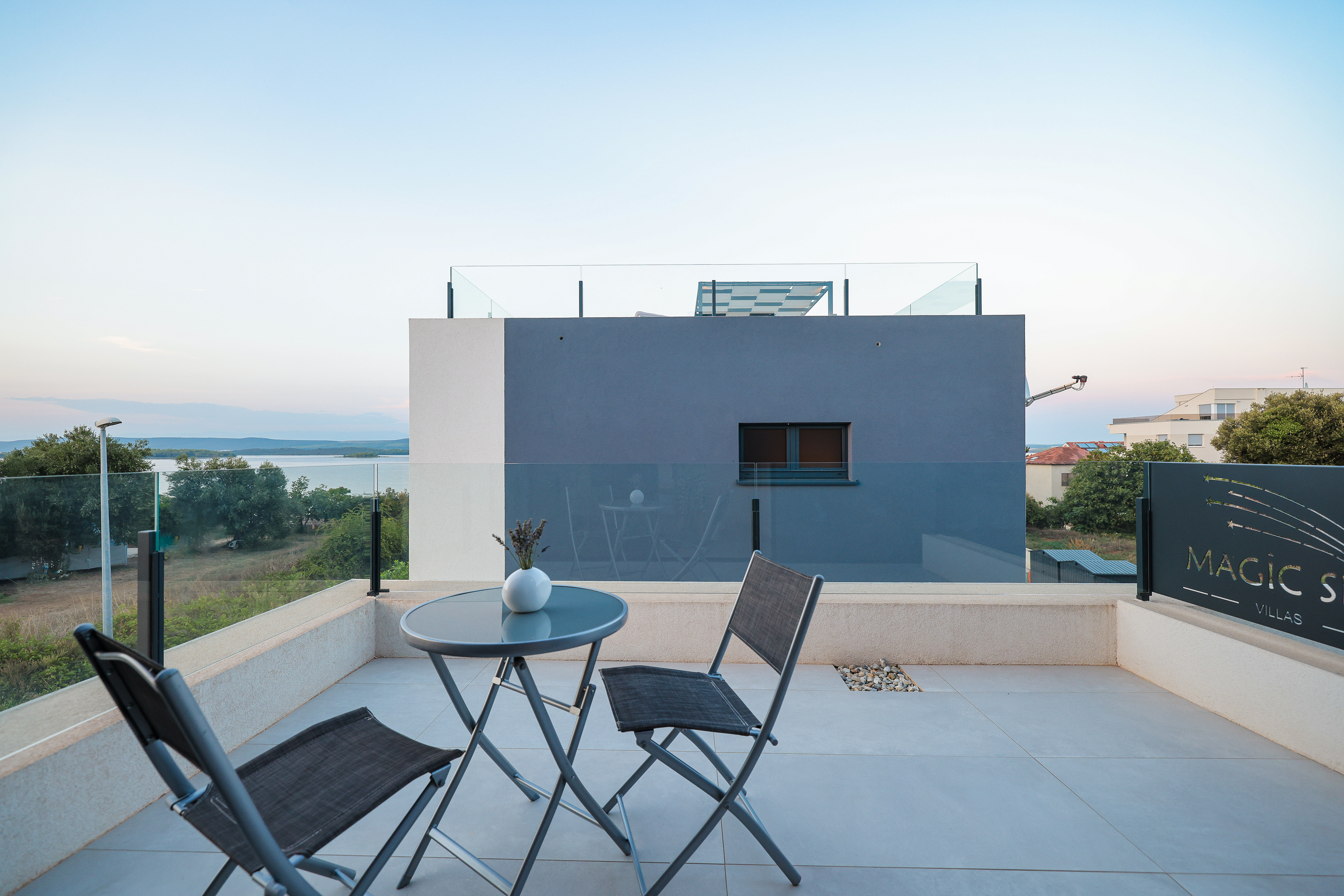 Eines der Highlights der Villa ist die spektakuläre Dachterrasse mit privatem Jacuzzi und einer gemütlichen Lounge-Ecke. Von hier aus genießen die Gäste einen atemberaubenden Panoramablick auf die Adria und magische Sonnenuntergänge – die perfekte Kulisse für entspannte Abende. Hier zeigt sich, warum die Villa Magic Sky ihrem Namen alle Ehre macht.