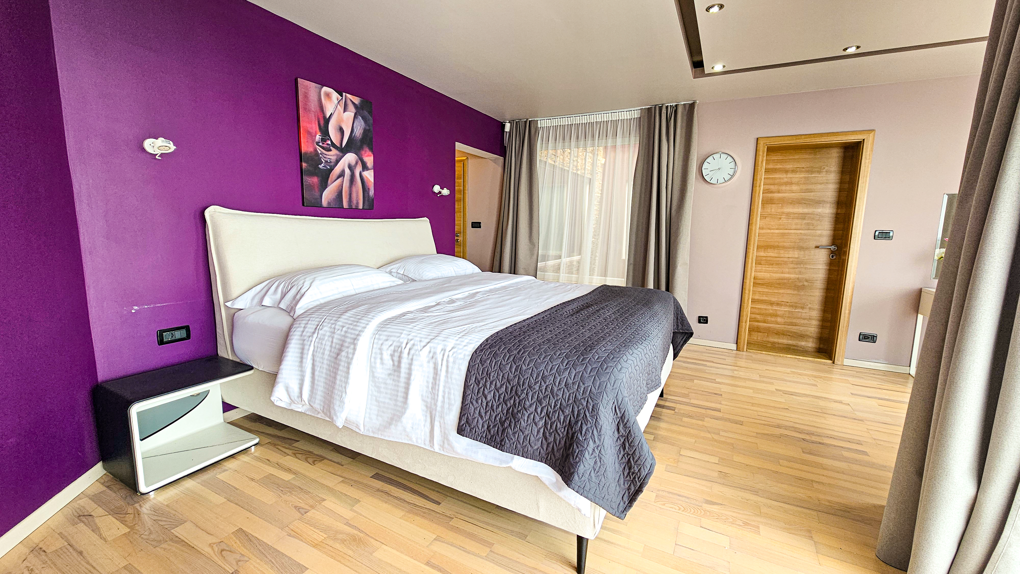 The heated indoor pool is a true standout, with floor-to-ceiling sliding windows that open to create a seamless transition between indoor and outdoor living. Take in the mesmerizing vistas while swimming, or lounge on the sunbeds in the beautifully landscaped garden with views that stretch as far as the eye can see. Step inside to experience the sheer spaciousness of the villa. The open-concept living area is perfect for both relaxation and socializing, with a large corner sofa, Smart TV, and stunning panoramic views of Split from every angle. The villa features 5 generously sized bedrooms, including a master suite with a luxurious tub that overlooks the stunning scenery—an ideal spot to unwind in a peaceful, romantic setting. The fully-equipped kitchen and dining area are designed to accommodate your entire group with ease, making meal times a joy. For added comfort, Villa Awesome offers a gym, sauna, and air conditioning throughout the property.