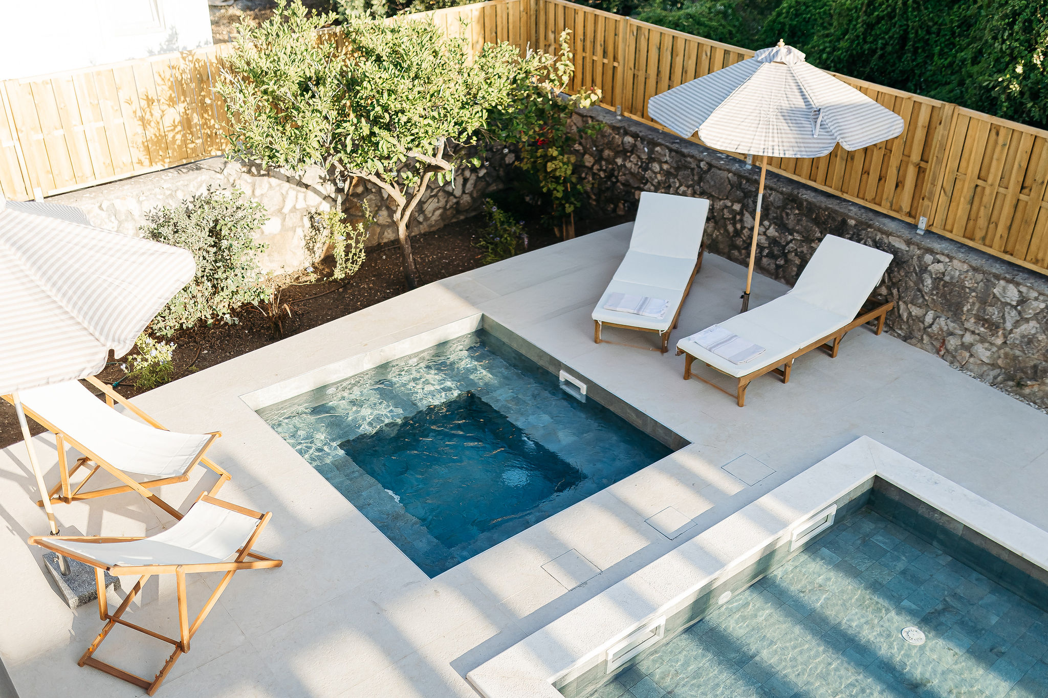 The outdoor space of Villa Ksenia is designed as a natural extension of the living area — open, inviting, and entirely private. Almost 11-metre long private swimming pool forms the centrepiece of the garden, surrounded by comfortable sun loungers and Mediterranean greenery. Adjacent to the pool, the outdoor jacuzzi provides the perfect setting for evening relaxation, while the outdoor shower enhances the resort-style ambiance. The covered terrace features a generous dining area and BBQ grill, ideal for long summer dinners under the Dalmatian sky. The landscaped garden, with fig trees, lemon trees, lavender, and pomegranate, creates a sense of seclusion while preserving an authentic island atmosphere. The property is fully fenced and offers secure private parking for up to three vehicles.