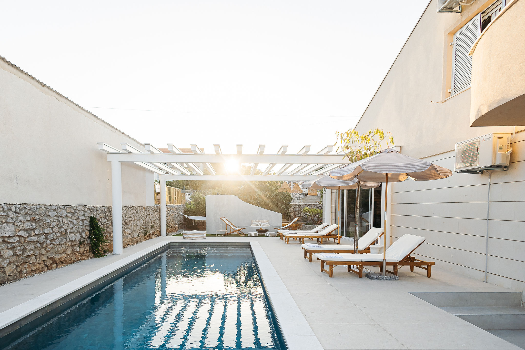 Just a short walk from the sea and Murter’s vibrant centre, this elegant villa offers the perfect balance between privacy and accessibility. Spanning 240 m² across two levels, Villa Ksenia accommodates up to 8 guests in 4 spacious bedrooms. Originally designed as a family residence rather than a typical rental property, the villa reflects thoughtful layout, quality materials, and a relaxed yet sophisticated atmosphere. With its private pool, outdoor jacuzzi, and indoor Finnish sauna, it delivers a complete luxury villa experience on the Adriatic coast.