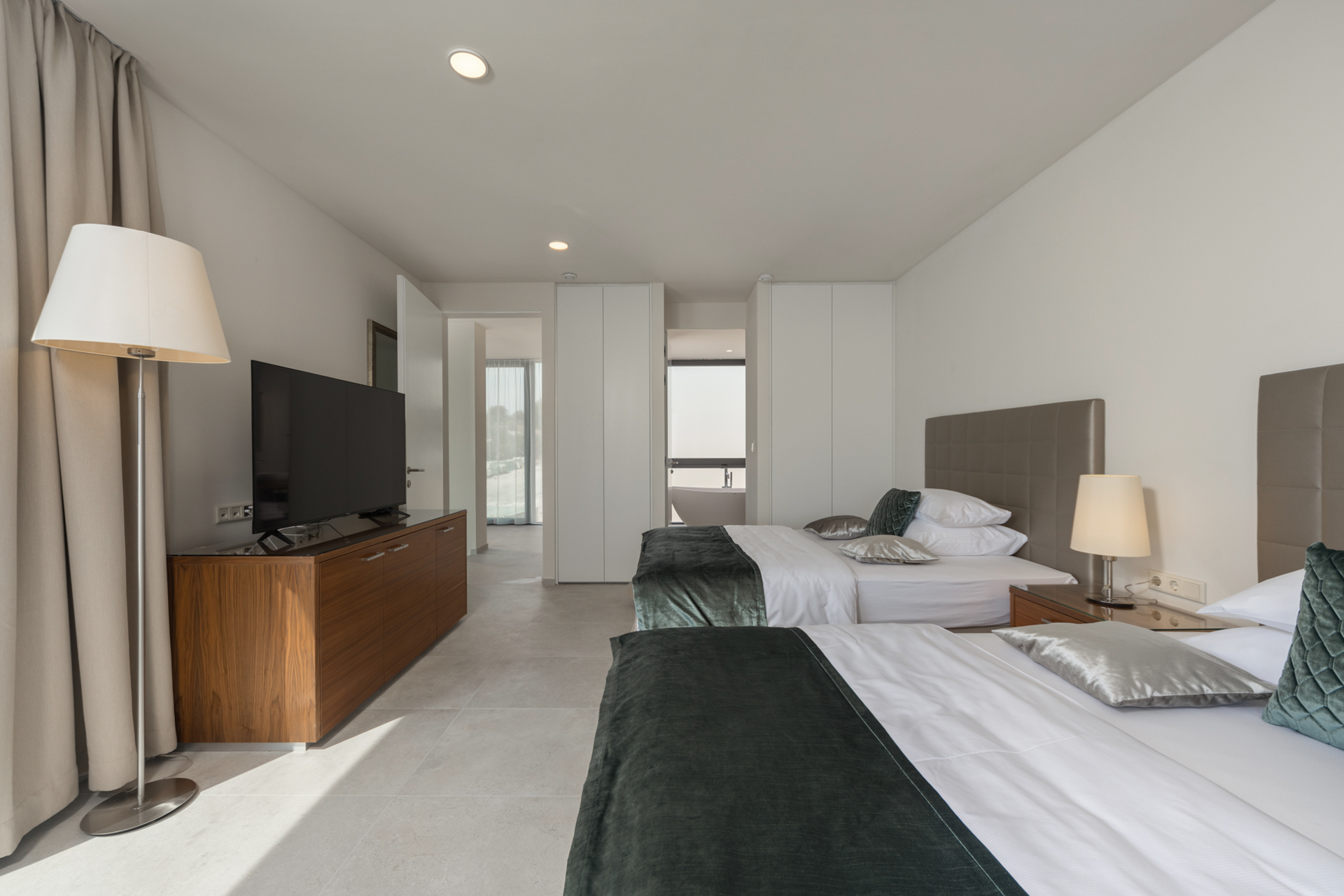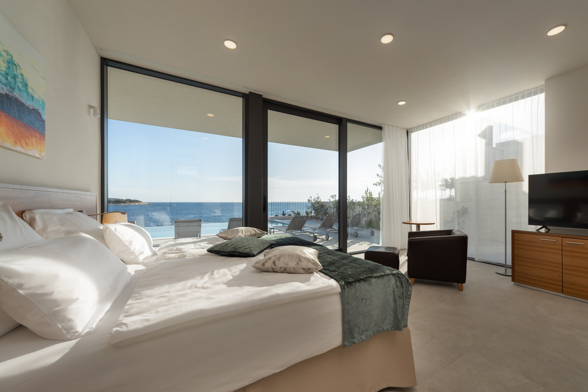 Situated on a seafront plot, Villa Valiosa offers elegant interiors and spacious outdoor areas designed for complete comfort. The villa accommodates up to 12 guests in five beautifully designed bedrooms and five bathrooms, including one disability-access bedroom and bathroom on the ground floor.