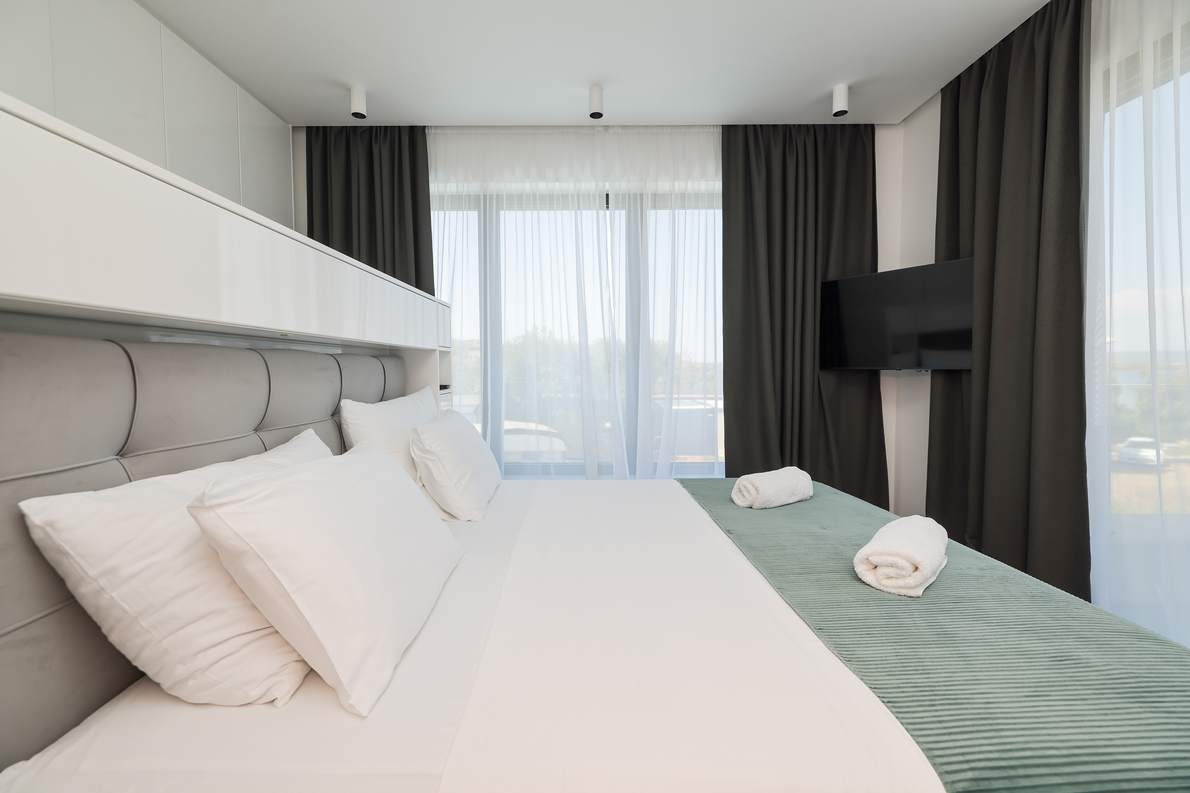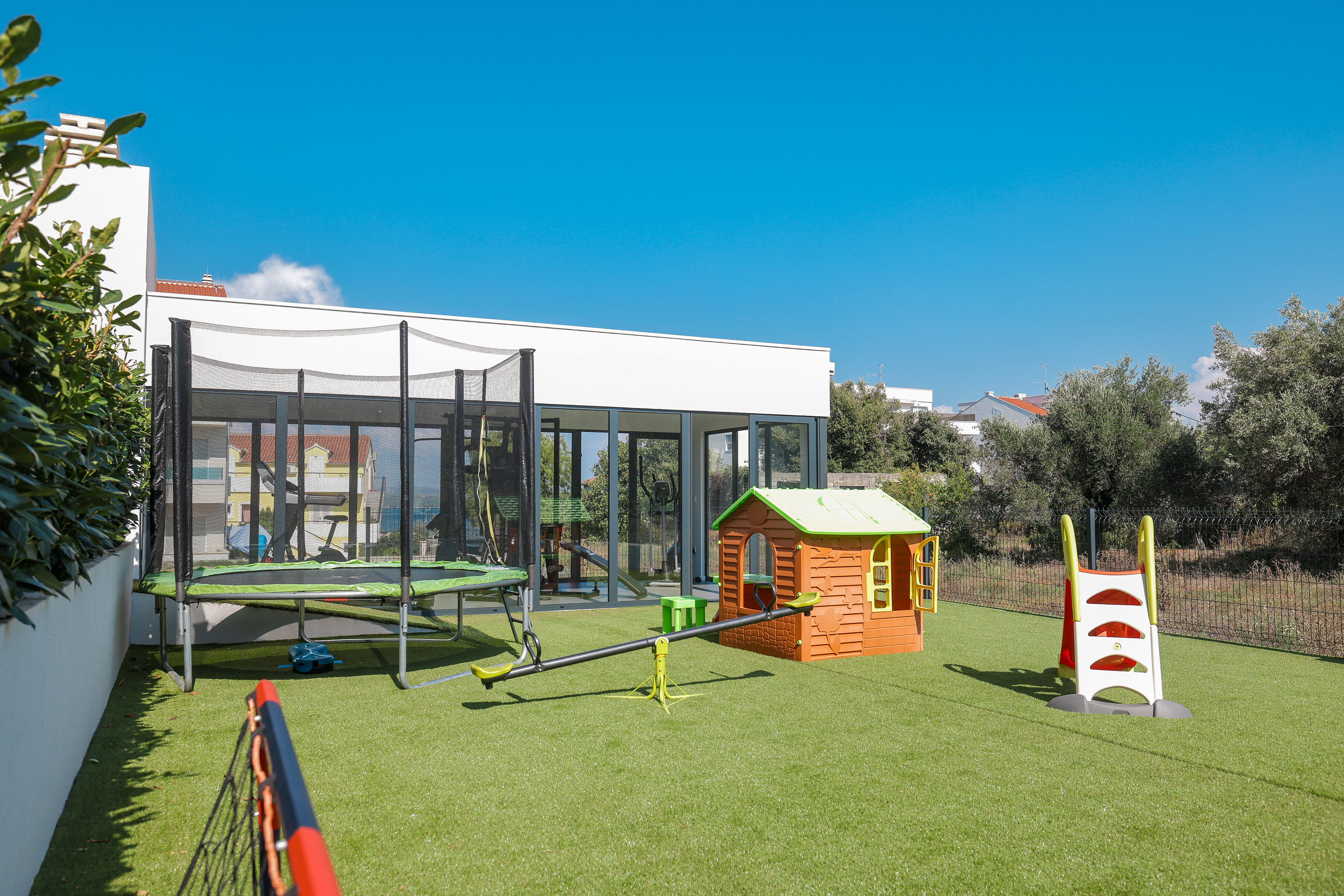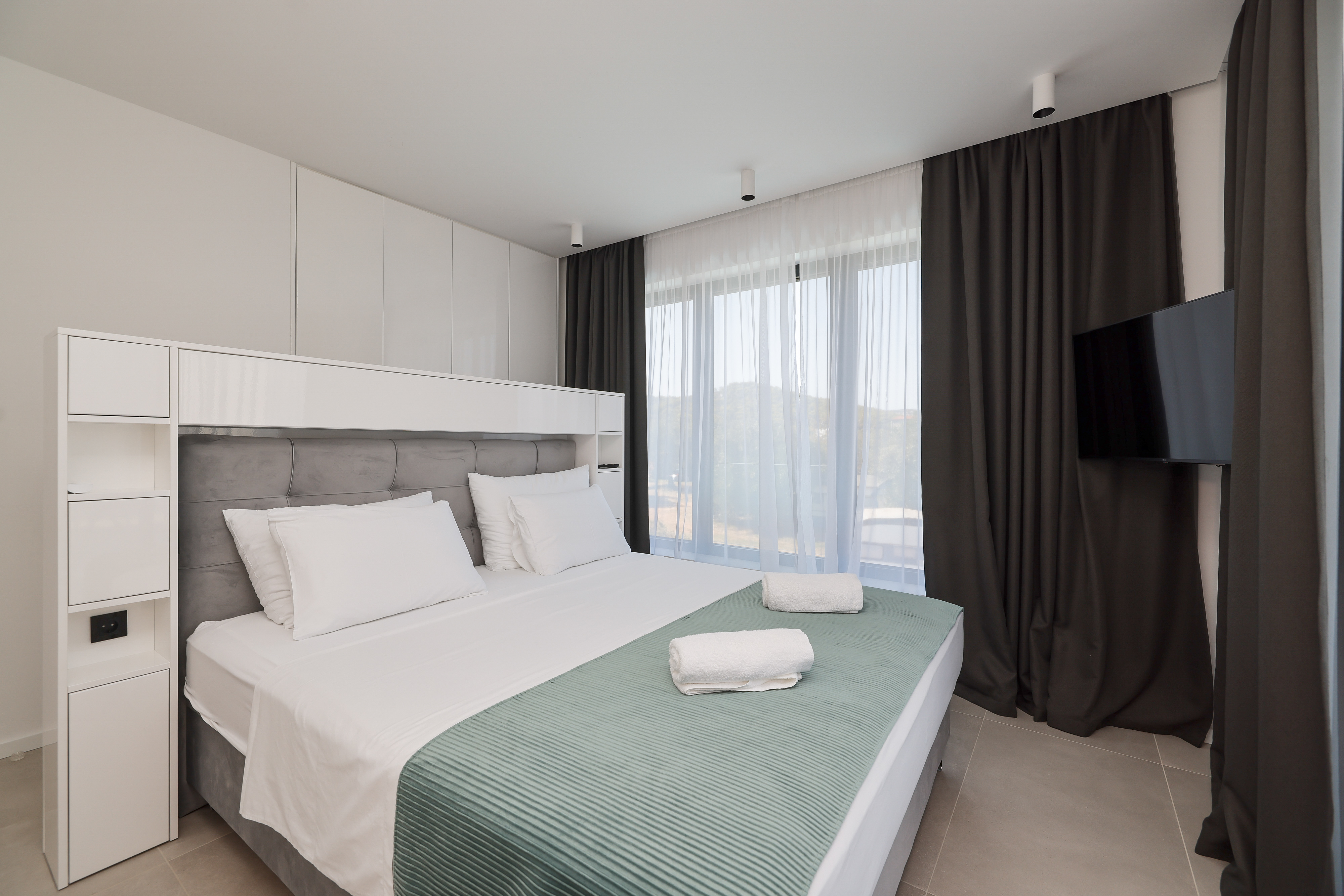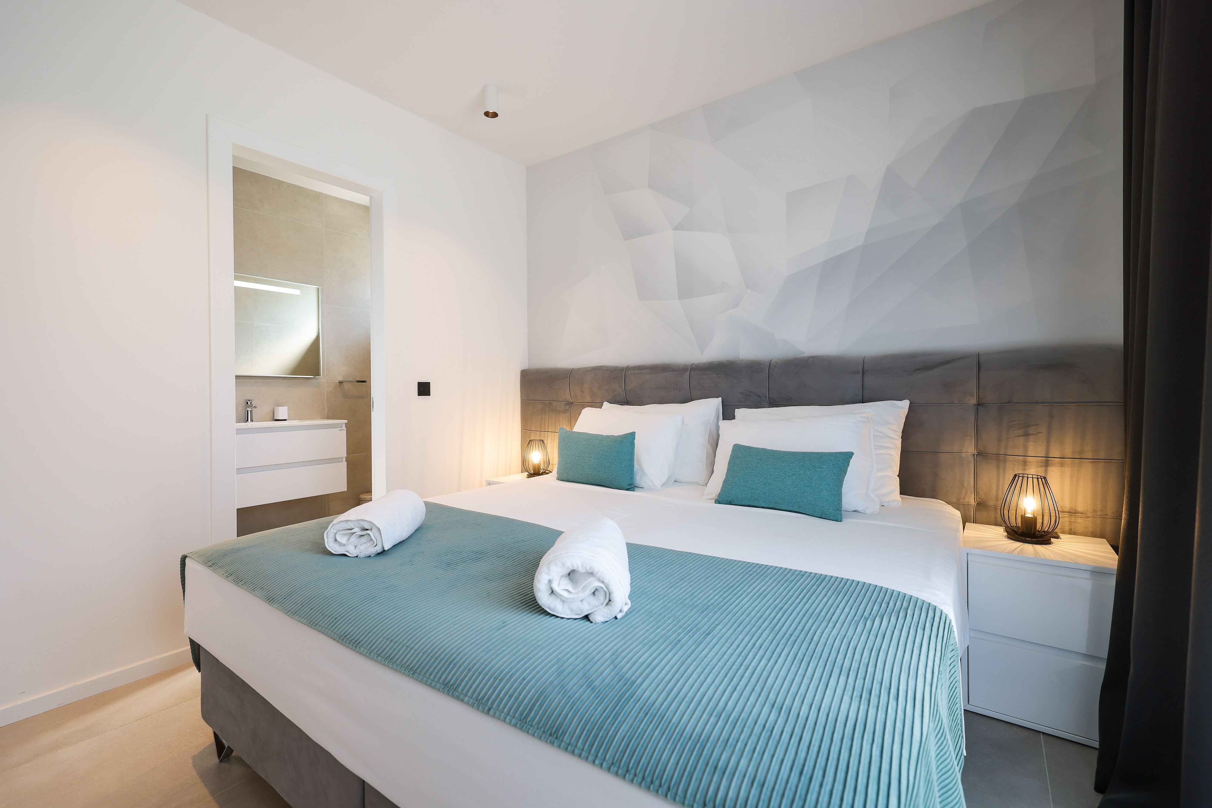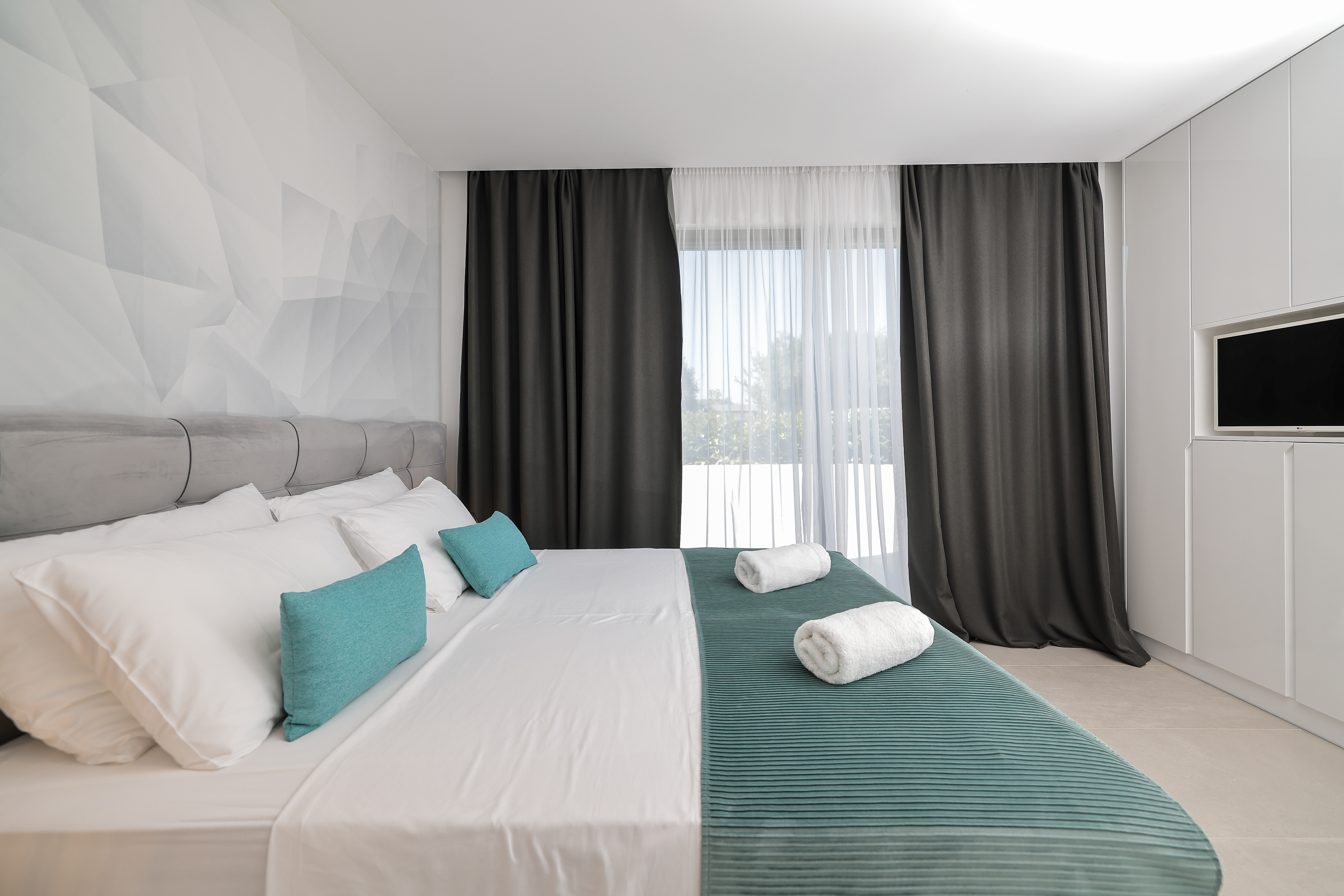 Villa Magic Sky 2 prostire se na 180 m² unutarnjeg prostora unutar privatne, ograđene parcele površine 360 m². Dizajnirana za obitelji i grupe prijatelja, vila može ugostiti do 8 osoba u 4 prekrasno namještene spavaće sobe, svaka s vlastitom kupaonicom. Vila nudi grijani privatni bazen, krovnu terasu s jacuzzijem te zajedničku teretanu i dječje igralište koje dijeli sa susjednom vilom, Villa Magic Sky 1.