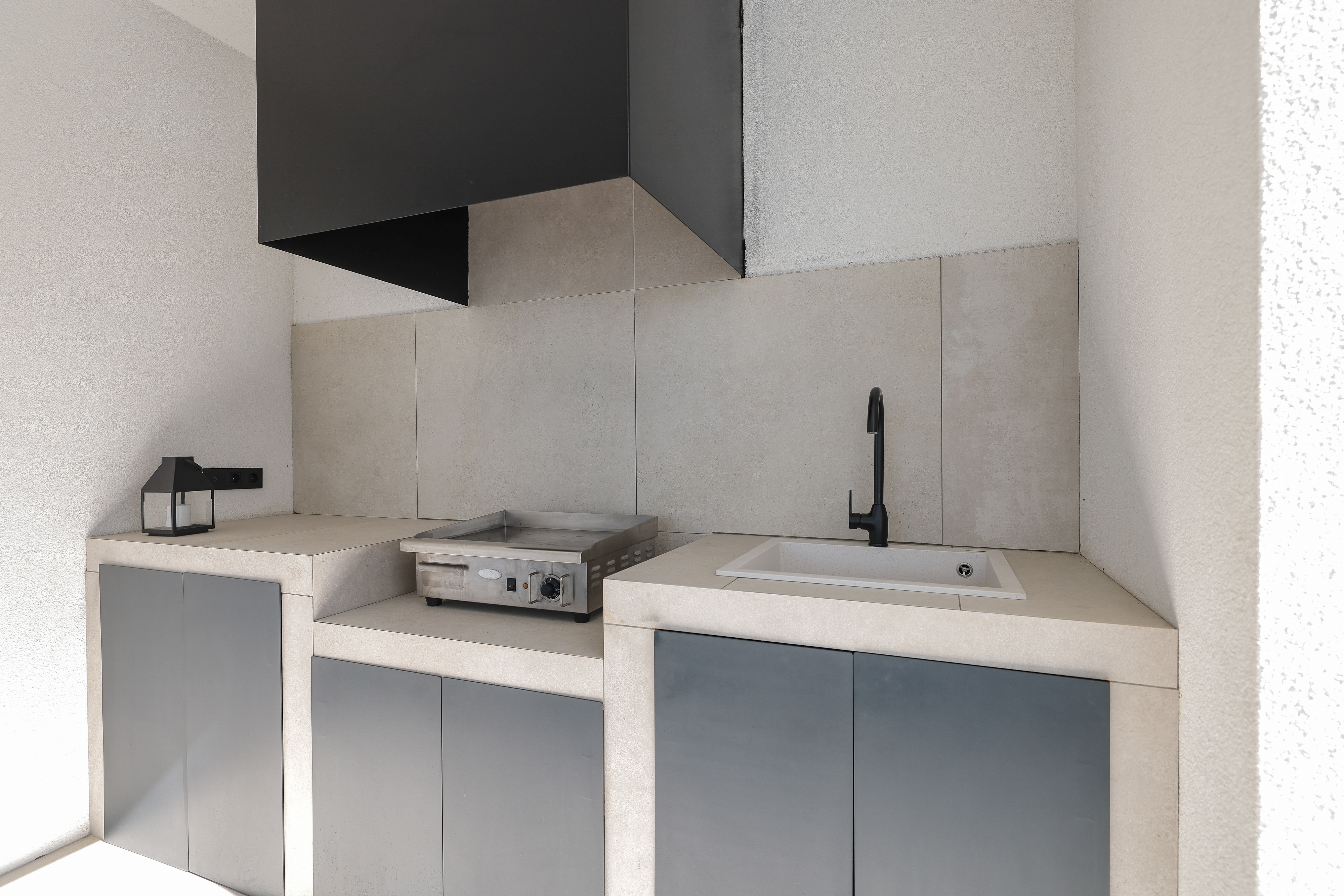 Vanjski prostor vile Magic Sky 2 osmišljen je za potpuni odmor i uživanje. Privatni grijani bazen okružen udobnim ležaljkama poziva vas na opuštanje pod mediteranskim suncem. Gosti mogu pripremati ukusna jela u vanjskoj ljetnoj kuhinji s roštiljem i uživati u blagovanju na otvorenom u natkrivenom dijelu za objedovanje. Ograđeni vrt sadrži travnatu površinu, vanjski tuš te pristup dječjem igralištu i prostoru za badminton, koji se dijele sa susjednom vilom Magic Sky 1. Budući da se more nalazi samo 50 metara od vile, gosti mogu lako izmjenjivati kupanje u bazenu s opuštanjem na obližnjoj plaži.