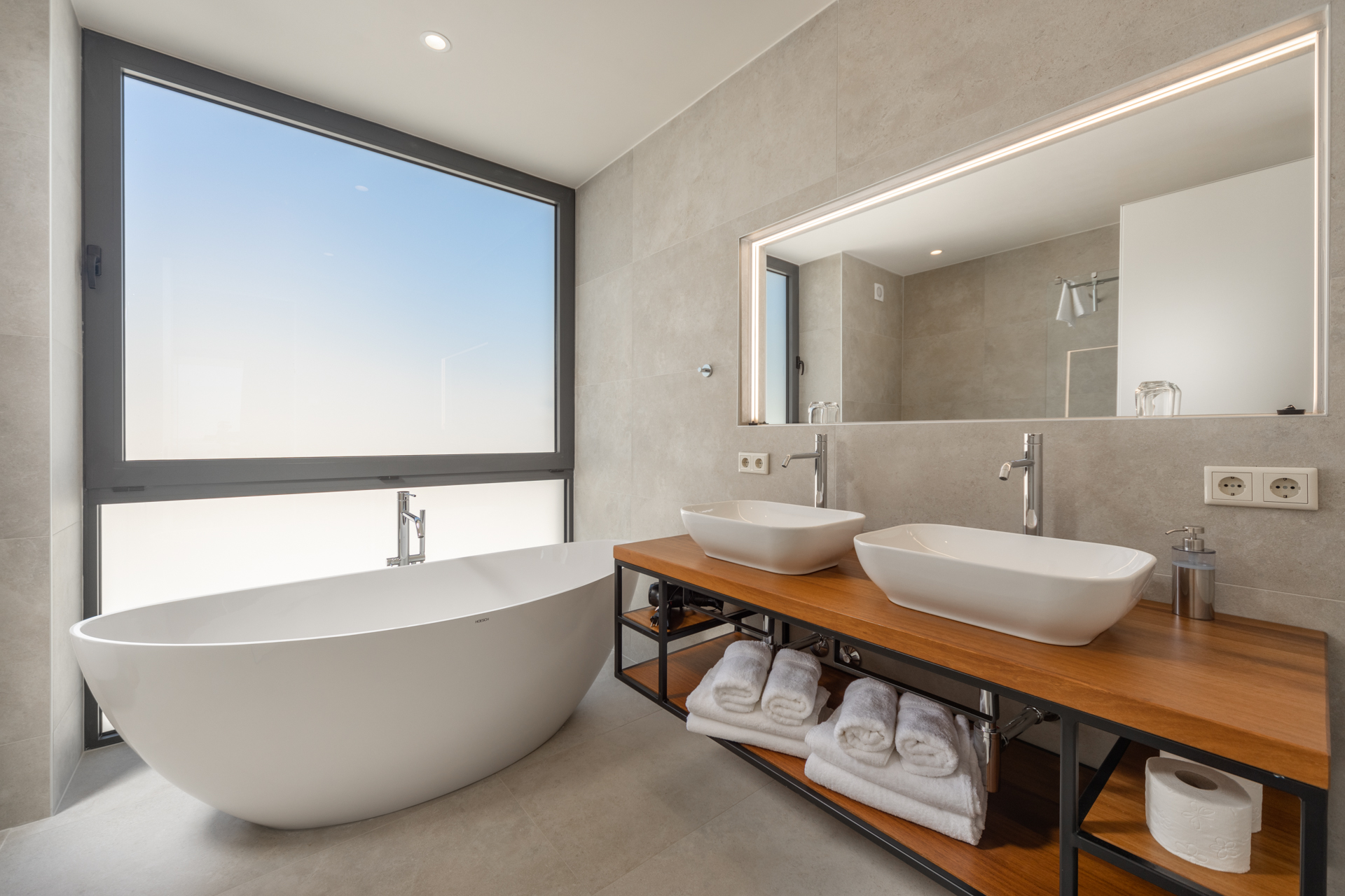 Na katu se nalaze četiri prekrasne spavaće sobe s pogledom na more — jedna master soba s dvama queen-size krevetima i privatnom terasom, te tri prostrane spavaće sobe, svaka s vlastitom kupaonicom, tušem i izlazom na balkon.